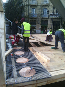 Thanks to the cultural capitality of the city of Donostia/SanSebastian, the students of 5rd year of the subject "Eraikitzeko Era Berriak" from the school of architecture from San Sebastian were asked to design a stage for a concert that would take place on the fountain from the "Plaza Bilbao" of the city.